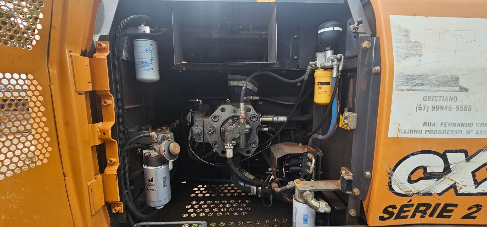 Máquina operacional, sem vazamentos, ar condicionado funcionando e pronta para trabalhar.