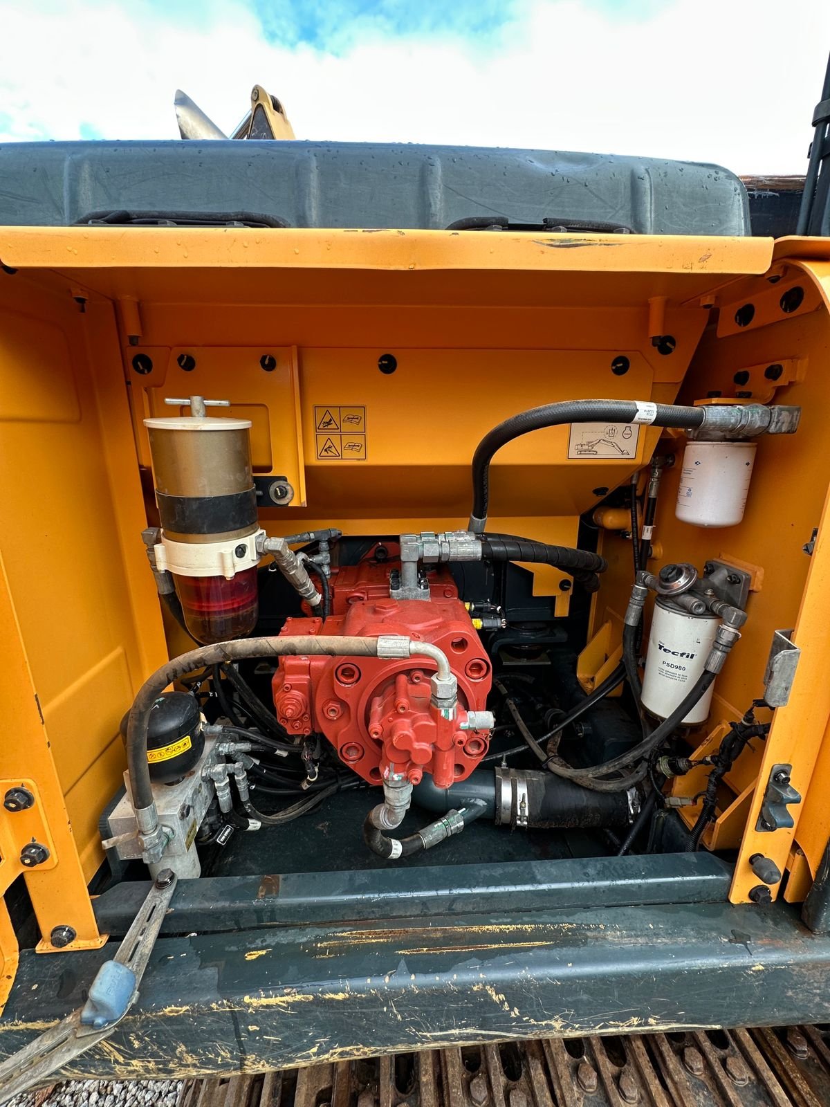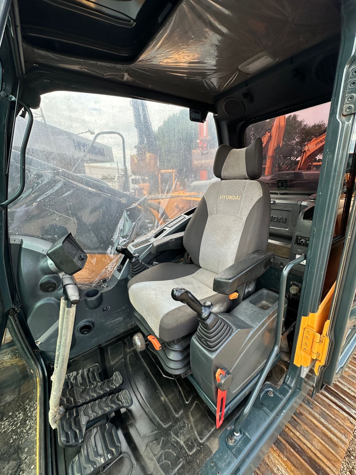 Máquina operacional, sem vazamentos, ar condicionado funcionando e pronta para trabalhar.
