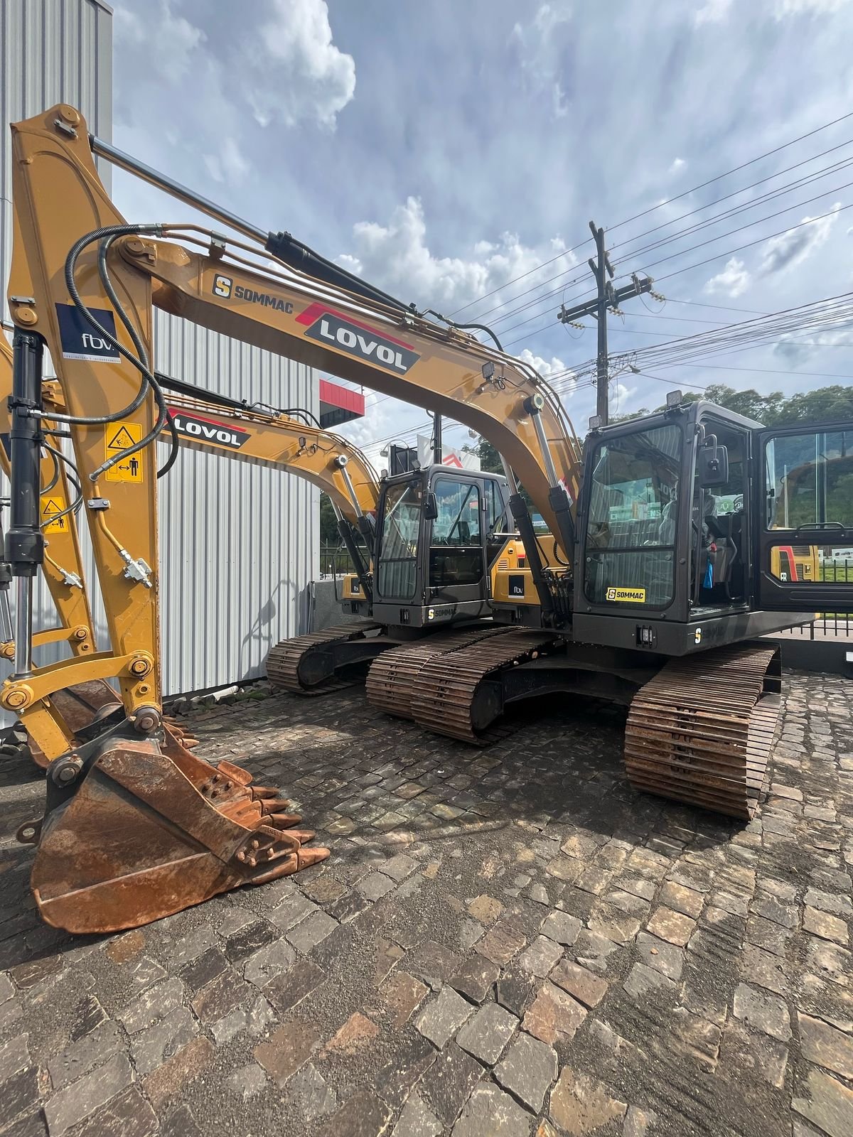 Máquina operacional, sem vazamentos, ar condicionado funcionando e pronta para trabalhar.