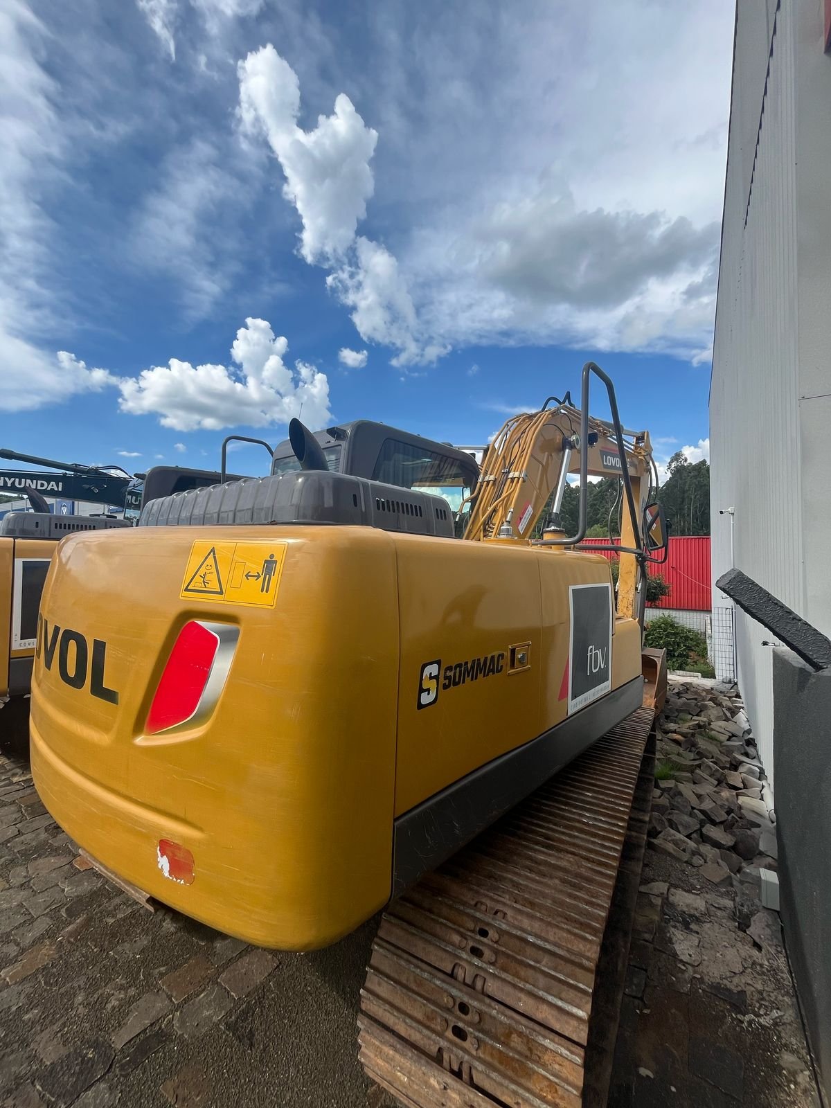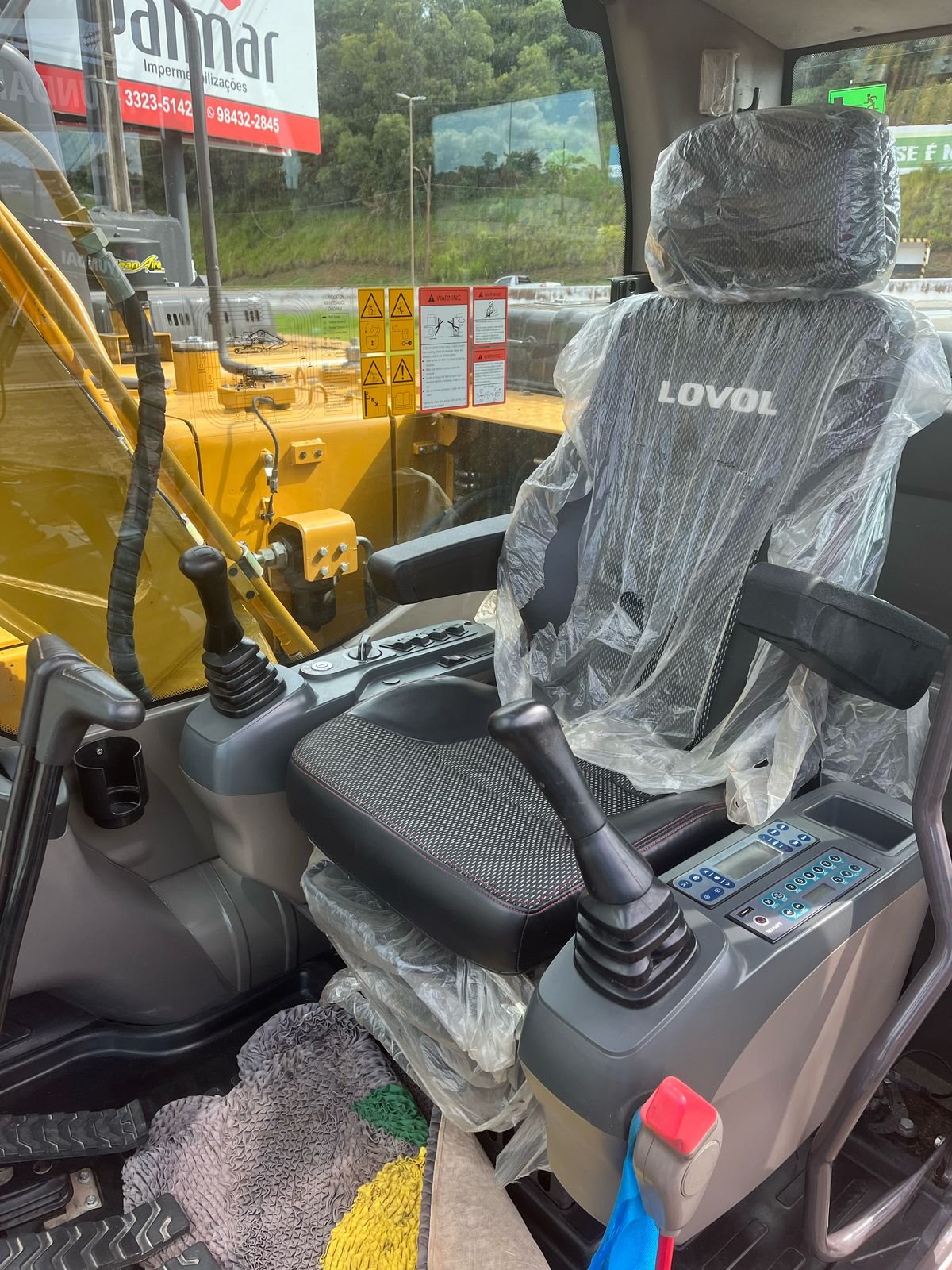 Máquina operacional, sem vazamentos, ar condicionado funcionando e pronta para trabalhar.
