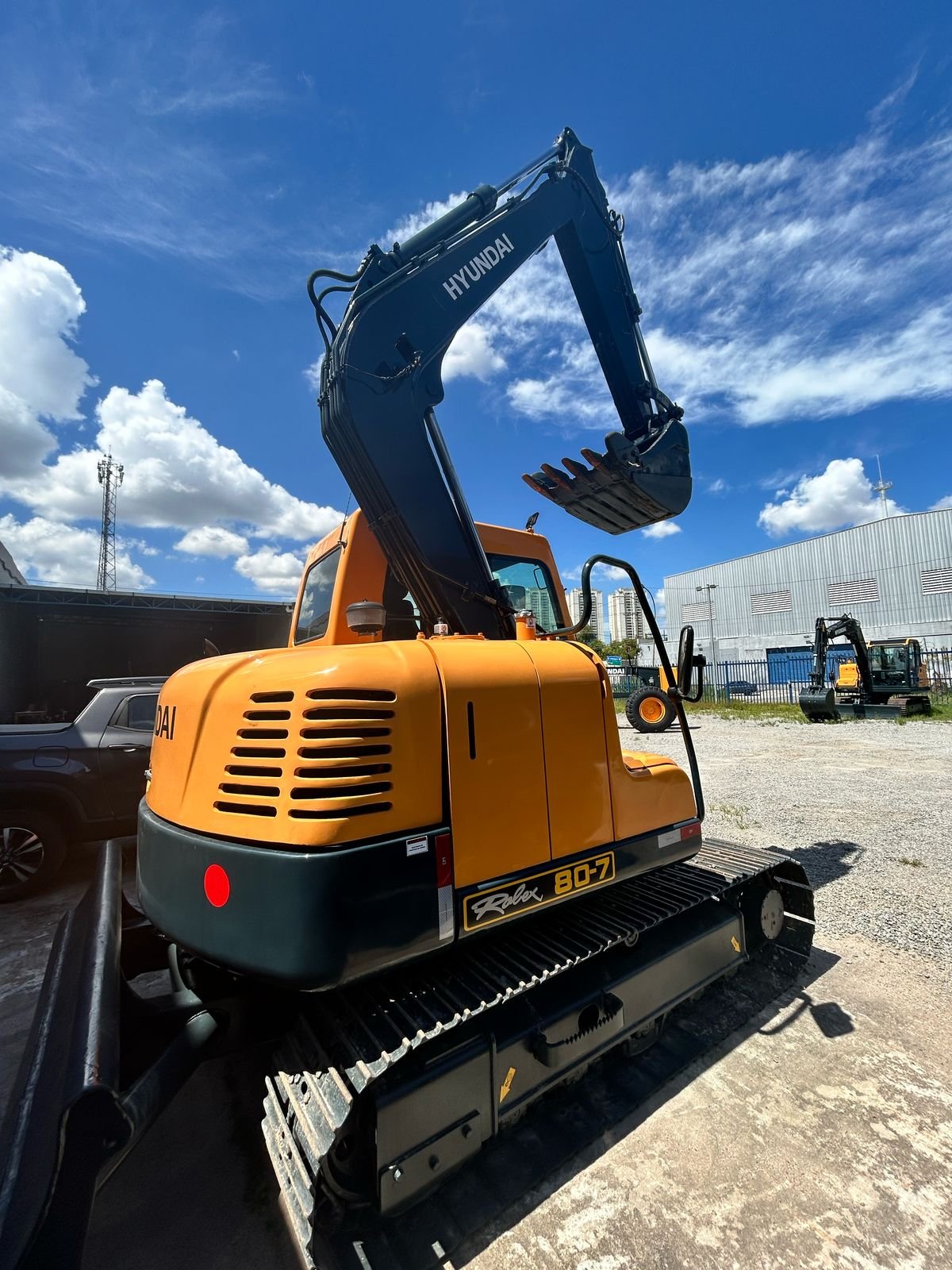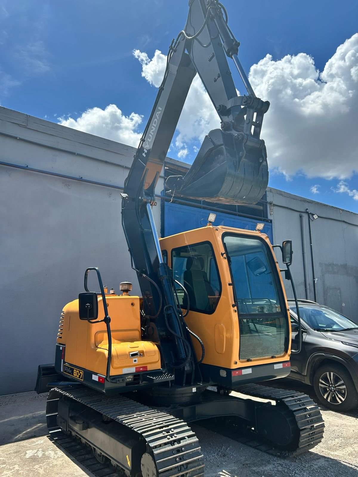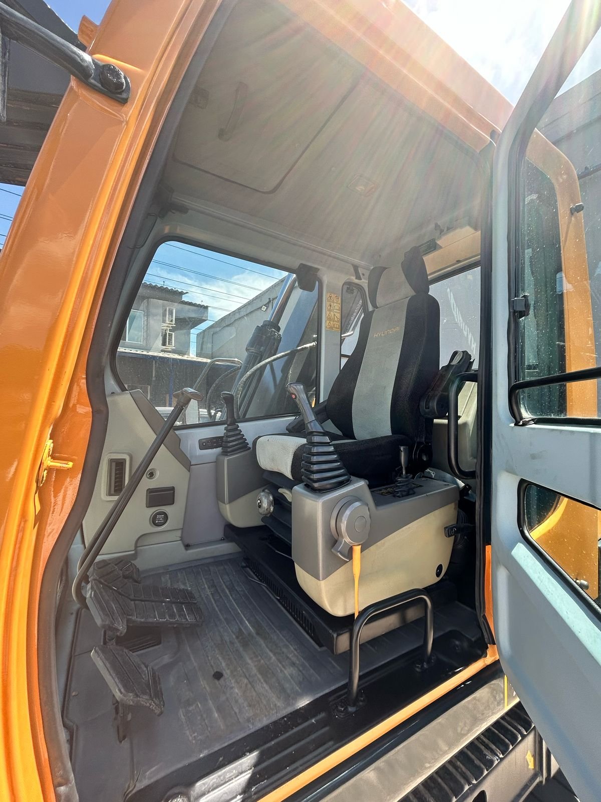 Máquina operacional, sem vazamentos, ar condicionado funcionando e pronta para trabalhar.